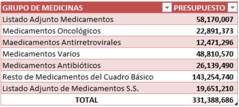 Presupuesto de Medicamentos para el HE