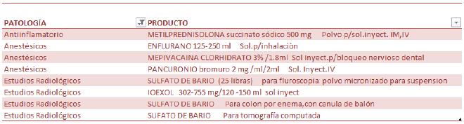 El hecho de no haber comprado estos medicamentos, reduce la capacidad del hospital de proveer el tratamiento adecuado en 18 patología distintas, las cuales se detallan a continuación, con sus respectivos medicamentos |13|: