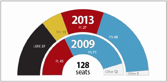 (seat distribution following the 2009 and 2013 elections)